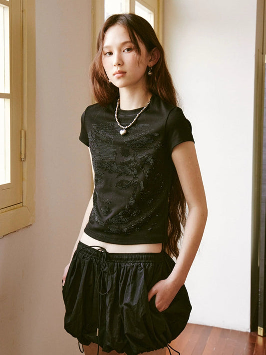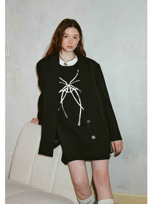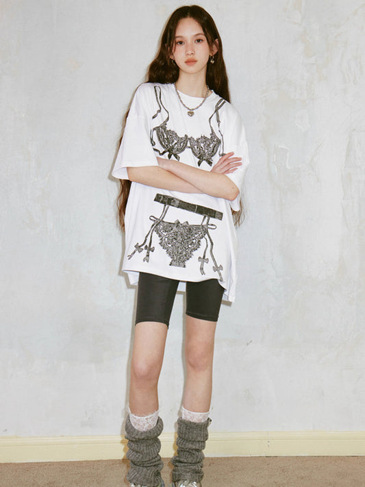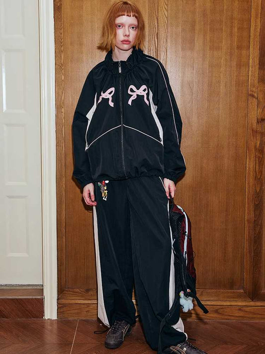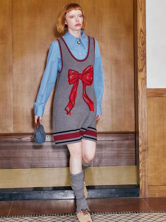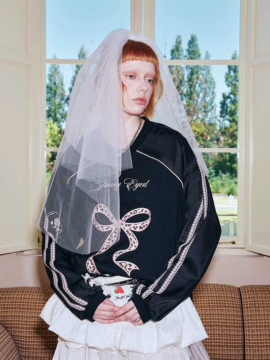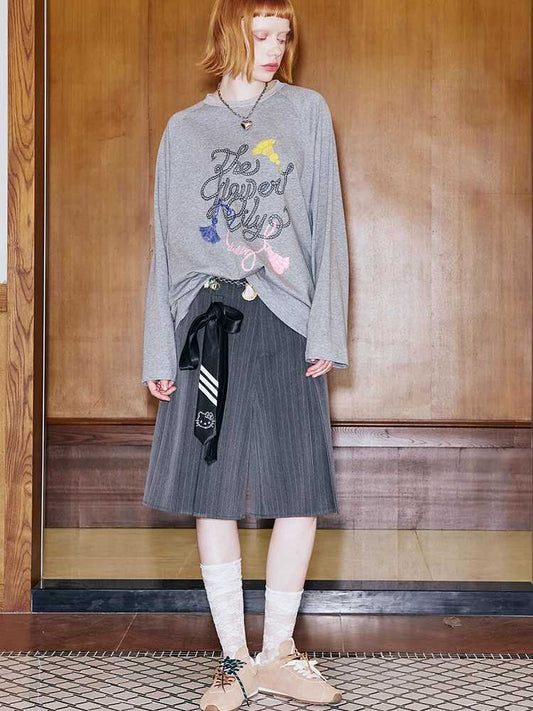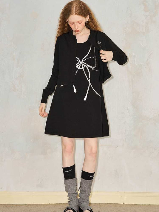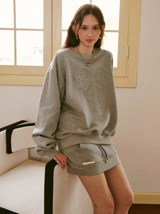 mosaic pixel bow sweatshirt skirt two-piece set