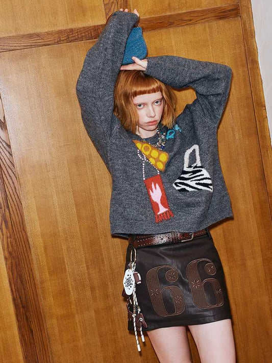 colorful jacquard hand-embroidered knitted sweater