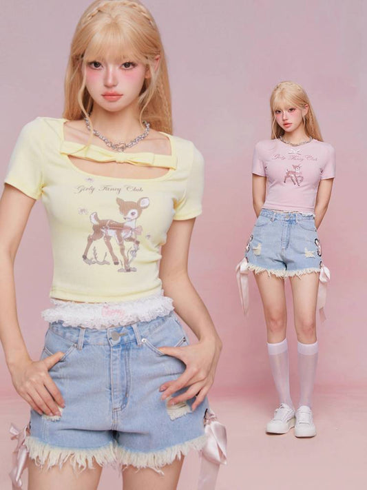 Cute Slim-Fit T-Shirt & Playful Shorts Set