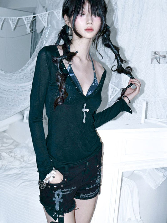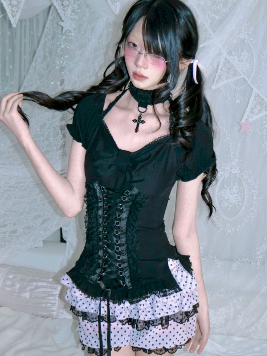 Black and white strap vest/short-sleeved shirt