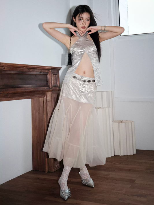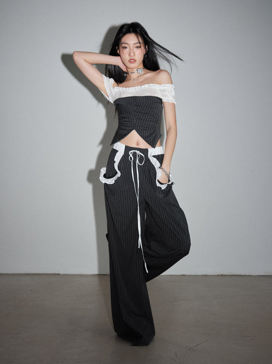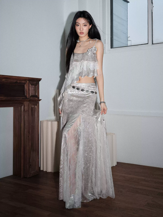 Soft cute fur lace tassel diamond top