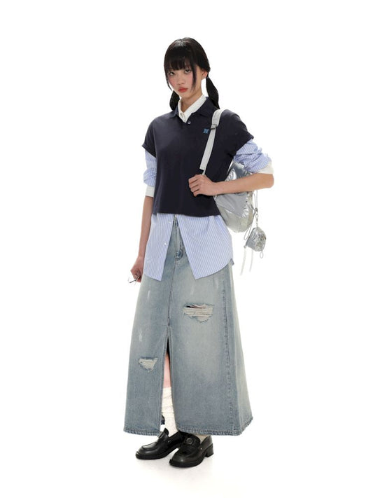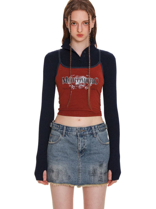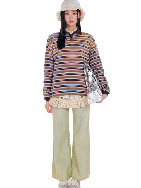 POLO collar embroidered logo long-sleeved T-shirt