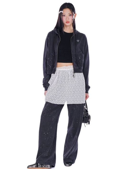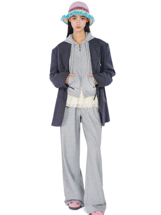 logo hole hooded sweatshirt cardigan trousers suit