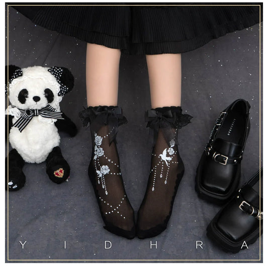 Yidhra - Nightingale and Rose - Gothic Lolita Socks Rose Lace Socks