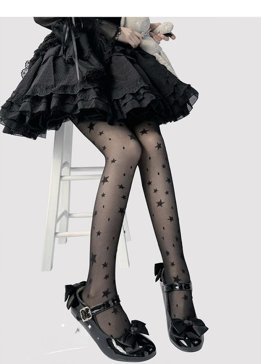 Hua Nai Cat - Summer Kawaii Lolita Thin Tights Sheer Pantyhose with Star Pattern