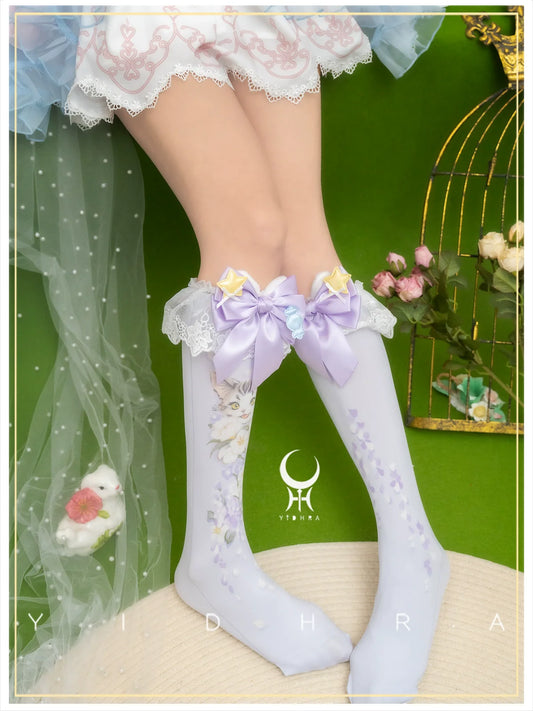Yidhra - Animal Garden - Kawaii Lolita Calf Socks Cat Rabbit Print Stockings