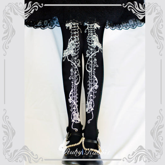 Ruby Rabbit - Gothic Lolita Bone and Rose Print Pantyhose