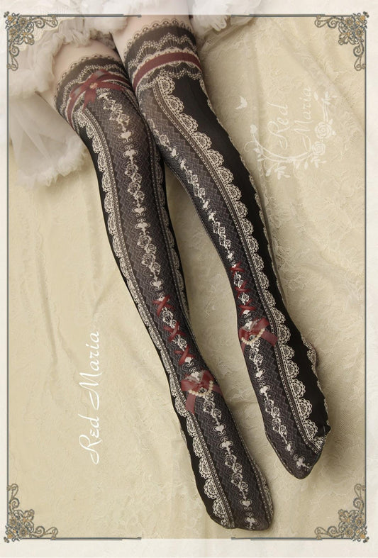 Red Maria - Lace Printed Bow 80D Lolita Tights Multicolors
