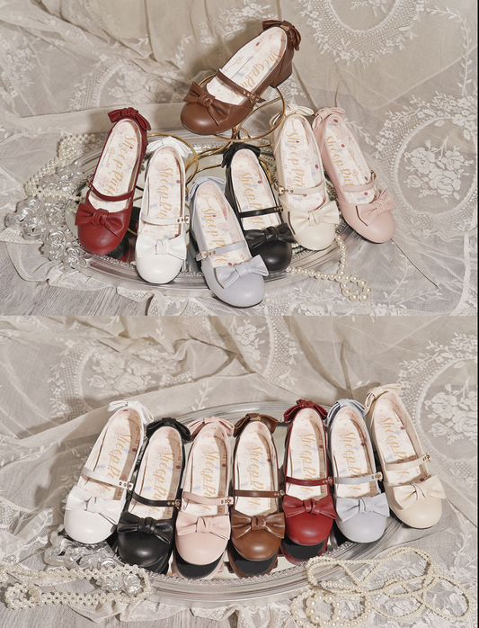 Sheep Puff - Elegant Lolita Bownot Retro High Heel Shoes