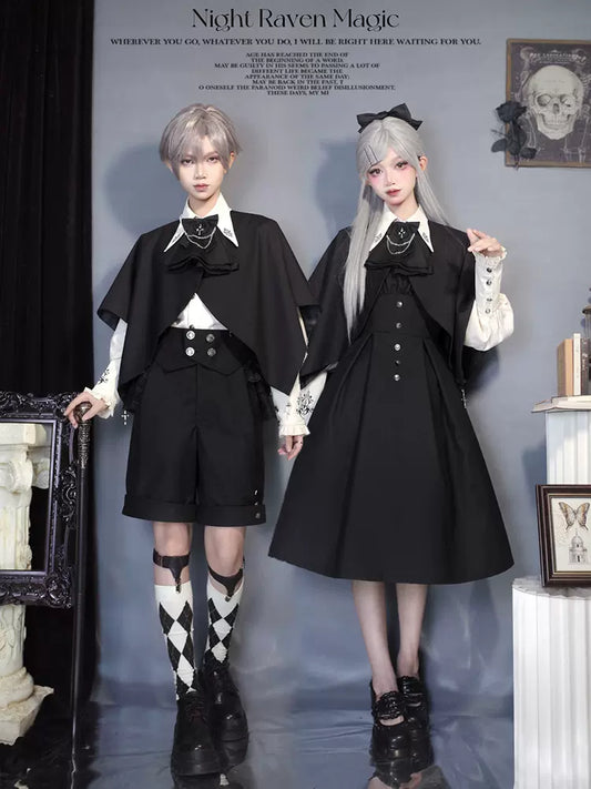 CastleToo - Night Raven Magic - Ouji Lolita Dress Set, Suspender Shorts & Cape