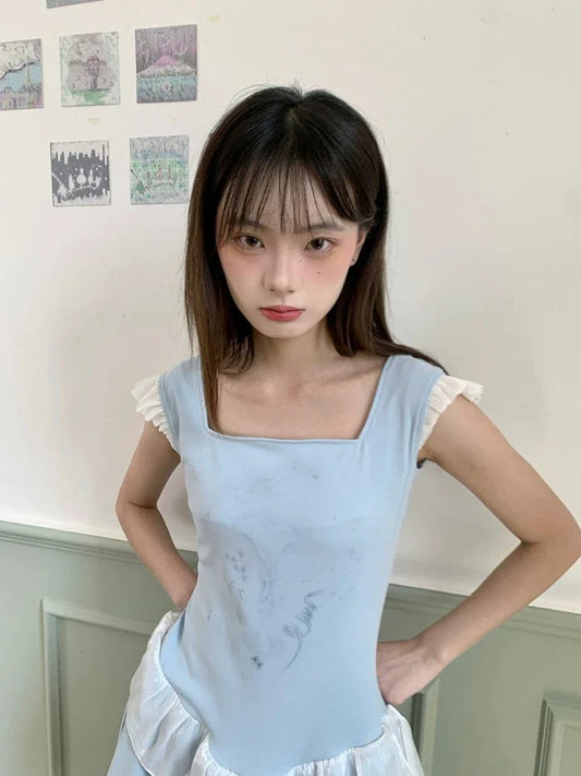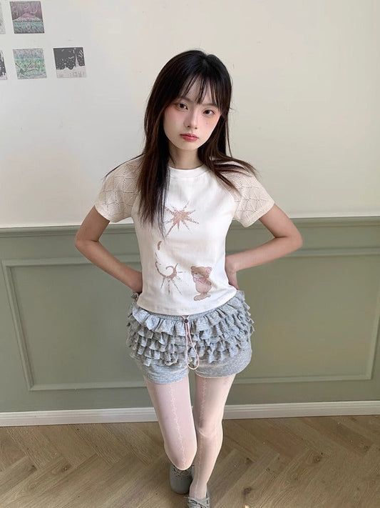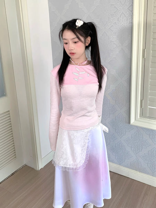 Dewdrop stitching long-sleeved T-shirt and water drop skirt
