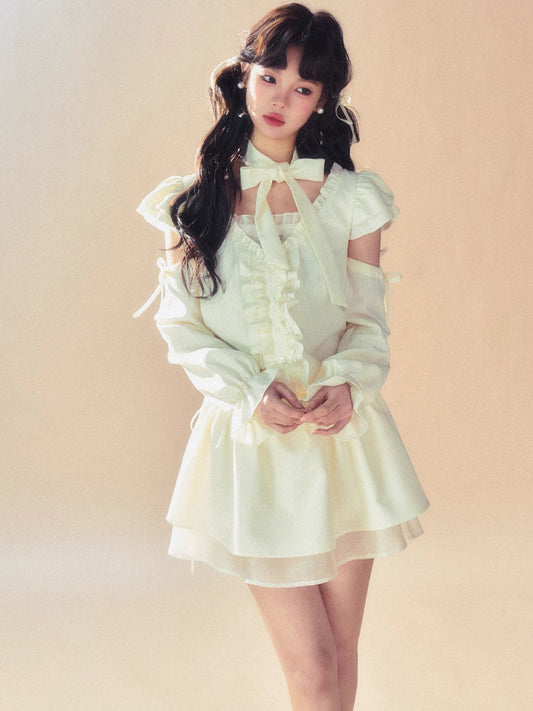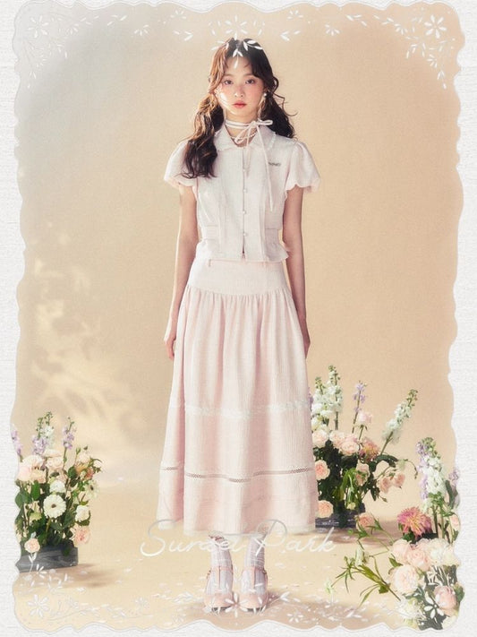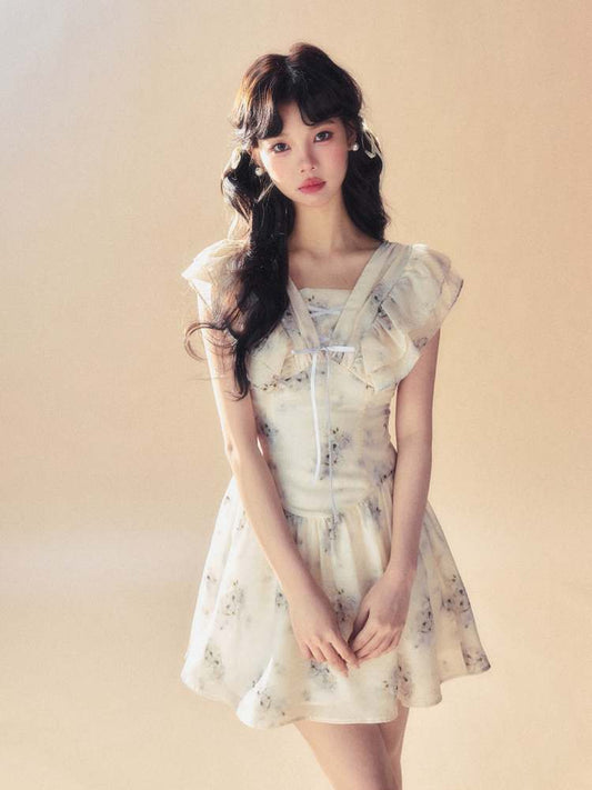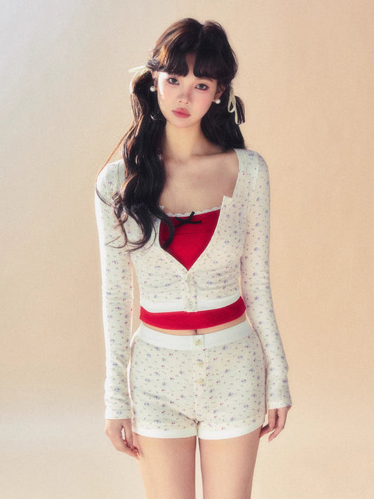 Floral Knitted Suspender Cardigan + Camisole + Shorts