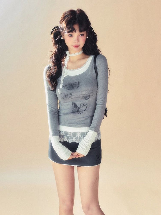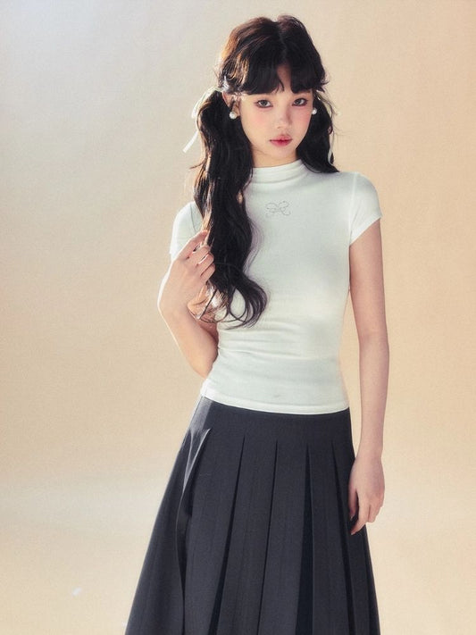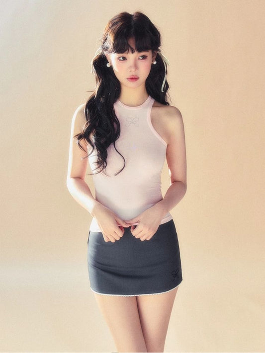 Dark Gray Herringbone Vest Shorts Pleated Skirt