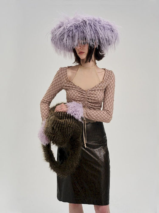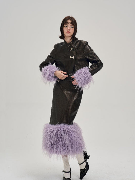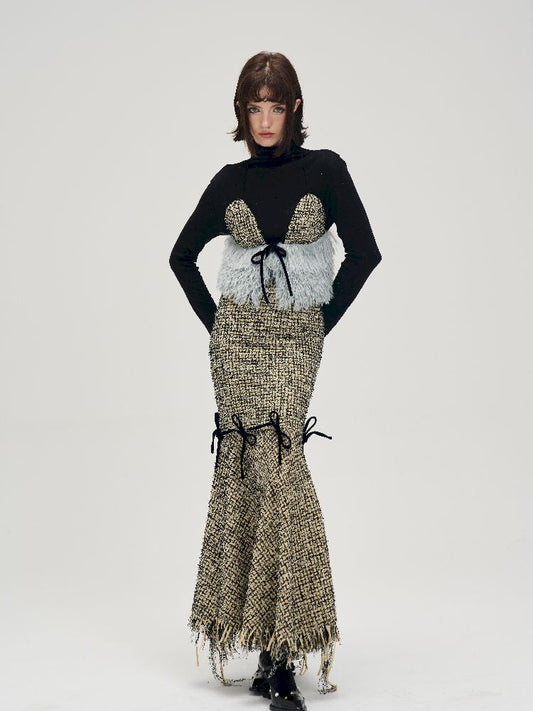 Faux Lamb's Wool Ribbon Top and Skirt Set
