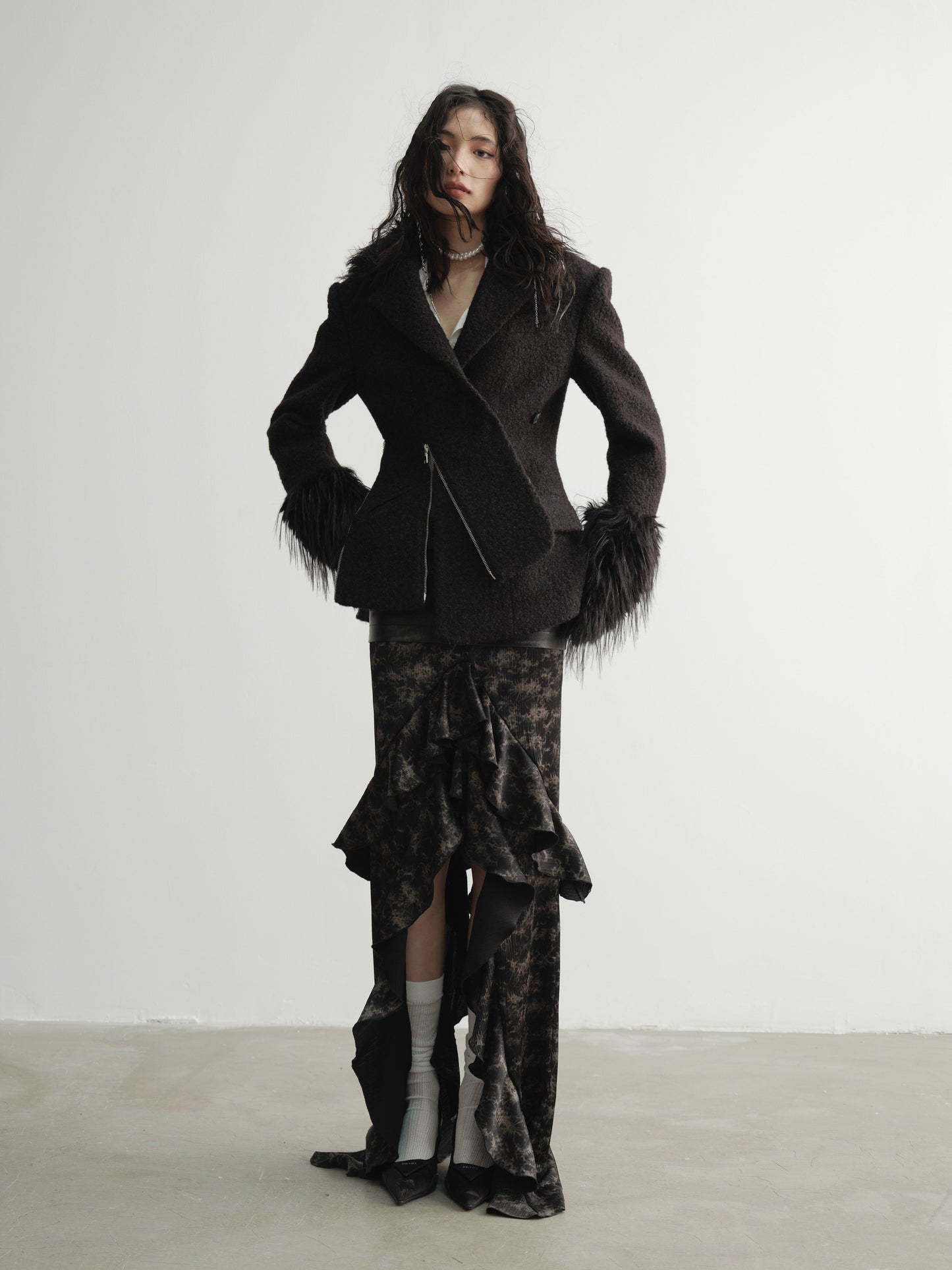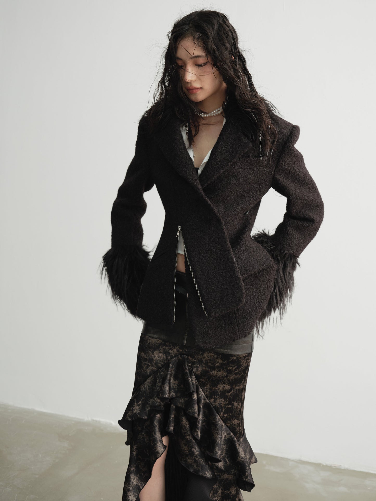 Imitation fur wool coat