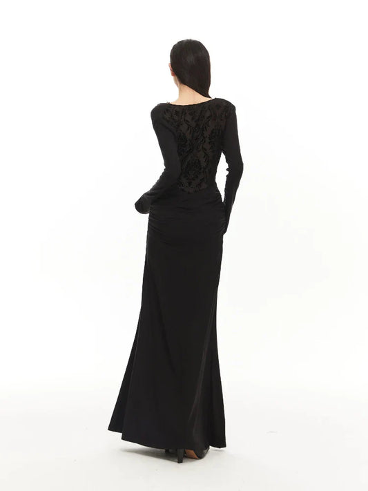 velvet pleated fishtail dress