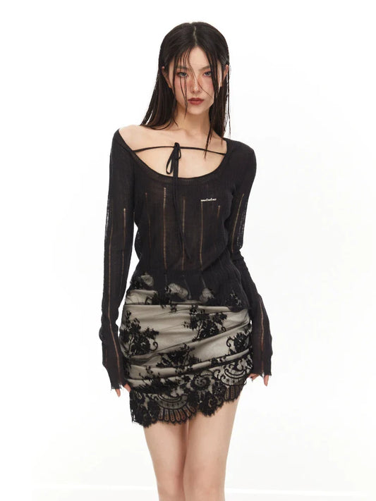 lace pleated sexy skirt