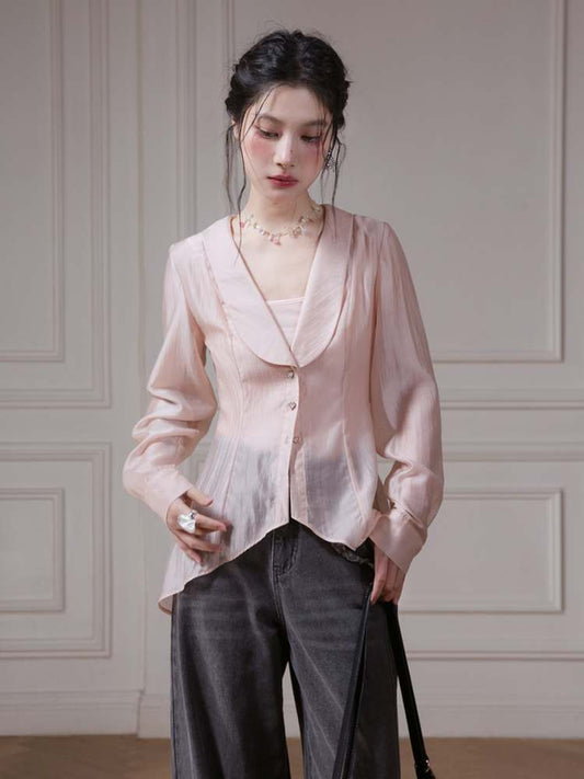 Big Collar Sheer Shirt & Camisole【s0000007879】