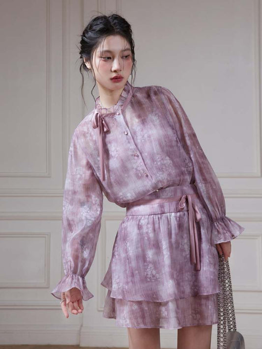 Floral Ribbon Sheer Shirt & Cami Skirt Set