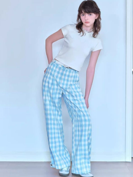 Sold outVendor:WhyBerryblue and white plaid wide-leg pants