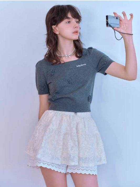 Floral Waist Draw Cropped T-Shirt [s0000008086]