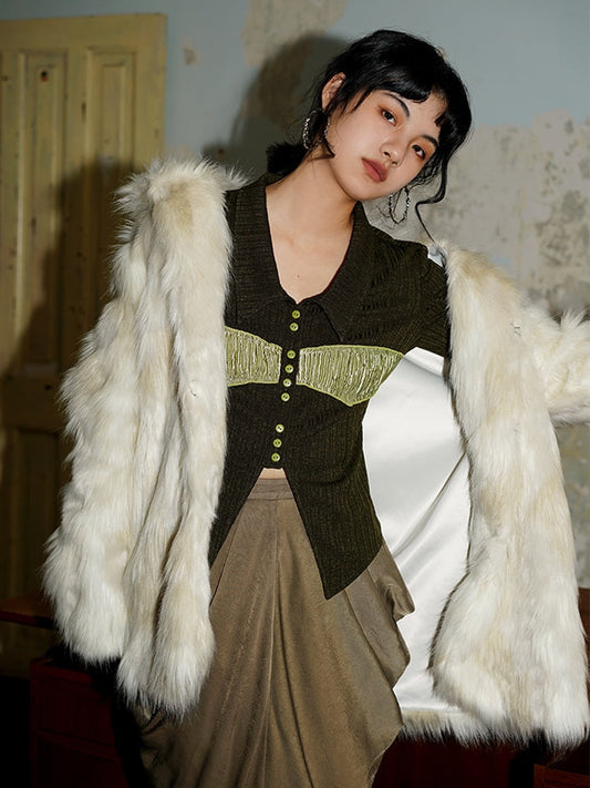 Sold outVendor:OPEN AESTHETICembroidery pattern fur collar jacket