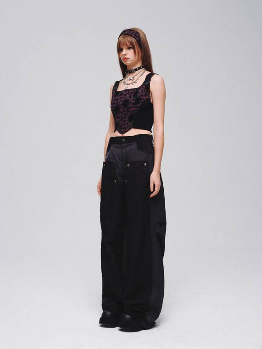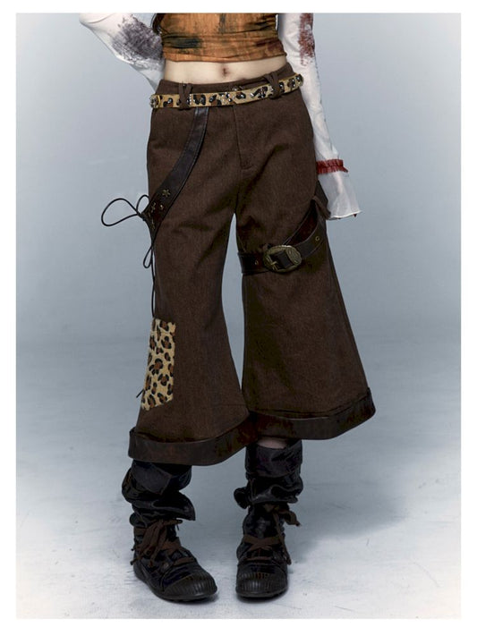 Leopard Leather Loose Low Waist Contour Seven Pants [s0000008405]