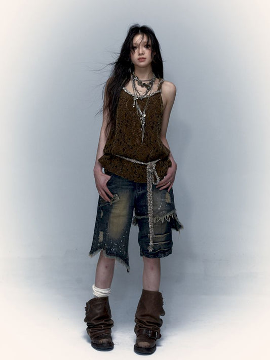 Lace Splicing Pocket 9 Pants [s0000007702]