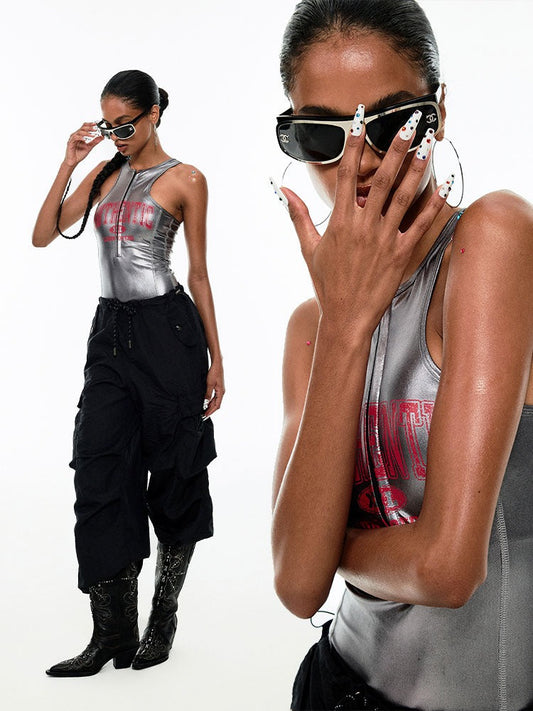 Gleaming Shiny Slim-Fit One-Piece Swimsuit