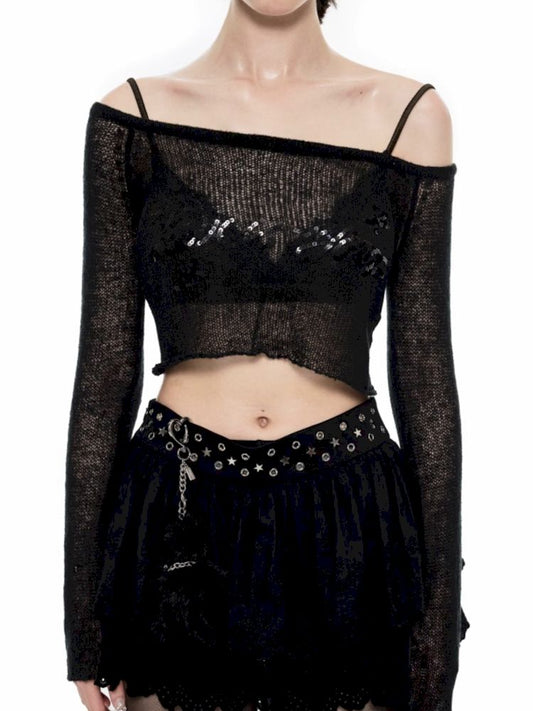 One-Shoulder Strapless Knit Hollow Out Top [s0000009683]