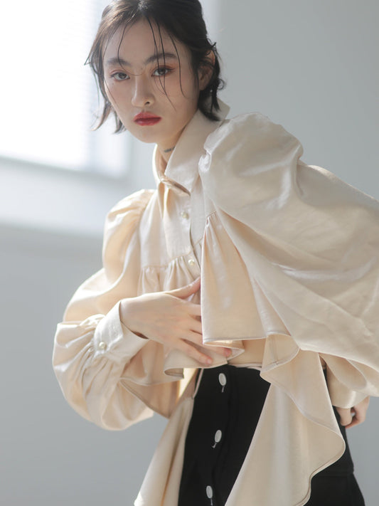 Ruffle Long Sleeve Short Shirt