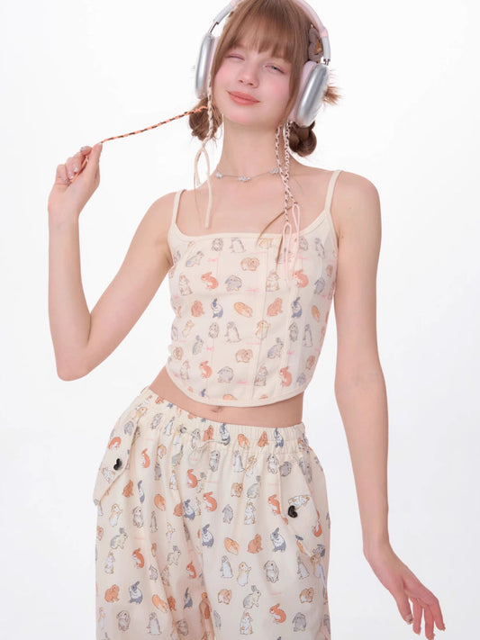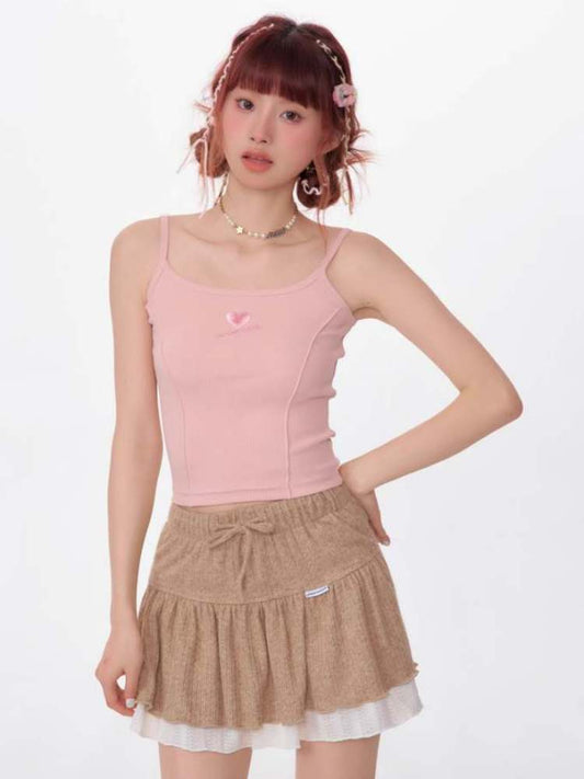 Slim Fit Heart Embroidery Knit Camisole [s0000007133]