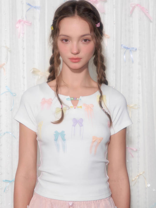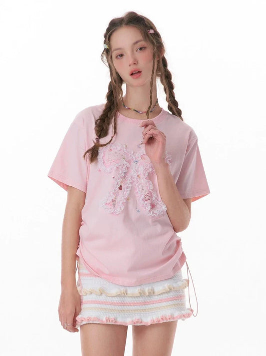 short-sleeved ribbon T-shirt