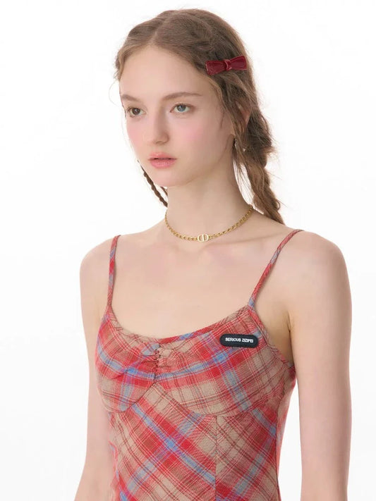 suspender red plaid dress