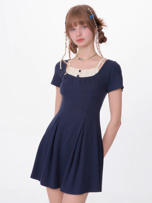 fake two-piece short-sleeved dress