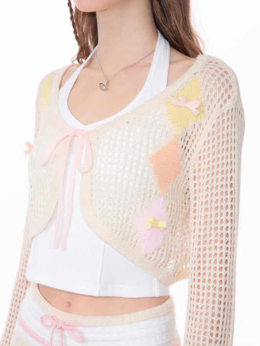 short hollow knit cardigan