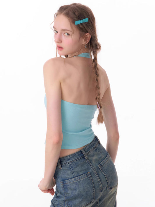 V-neck halter neck vest