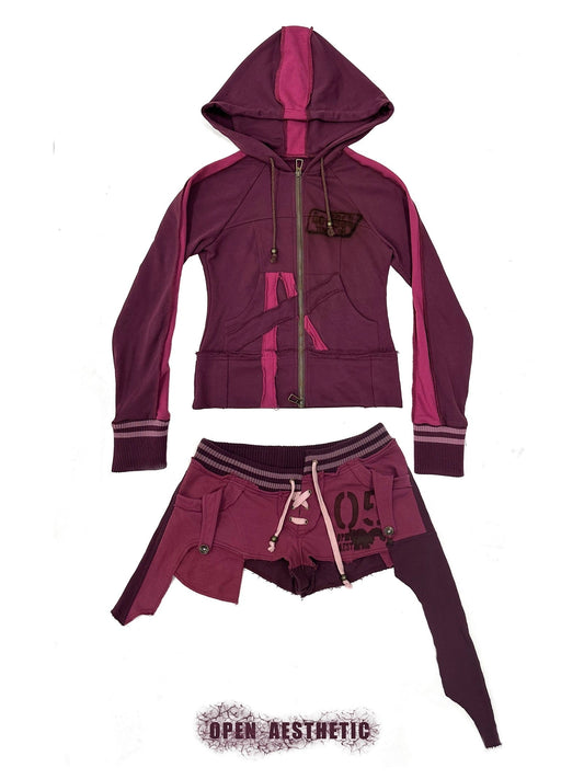 color spray pattern jacket and shorts