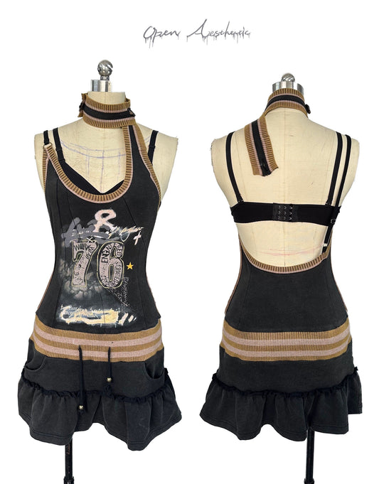 graffiti print asymmetric dress with bra
