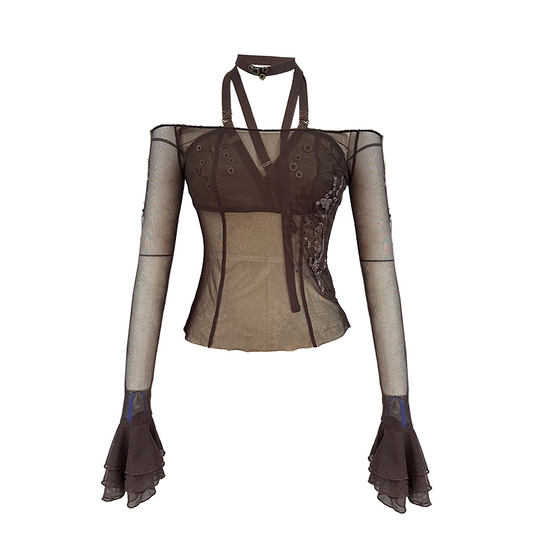 Sold outVendor:OPEN AESTHETICtwo-piece set beaded gauze shirt