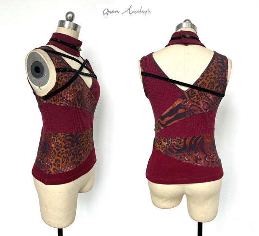leopard sleeveless slim top with scarf
