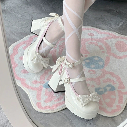 Milk Bun Bunny - Sweet Lolita High Heel Bow Princess Lolita Shoes