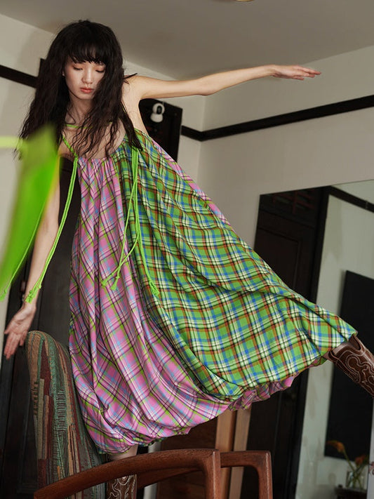 Sold outVendor:badtasteCheck Panel Rope-Strap Sling Dress