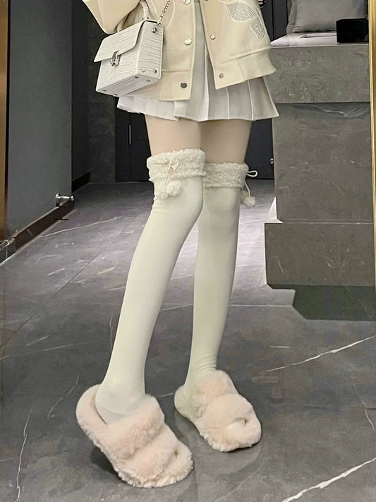 Hua Nai cat - Kawaii Winter Lolita Stockings Fuzzy Trim Furball Over-knee Socks