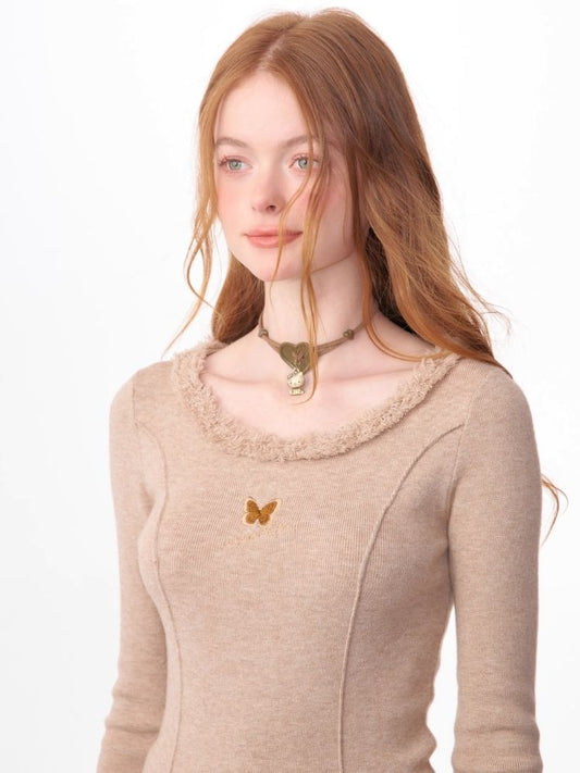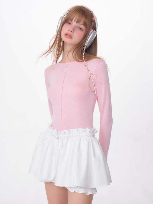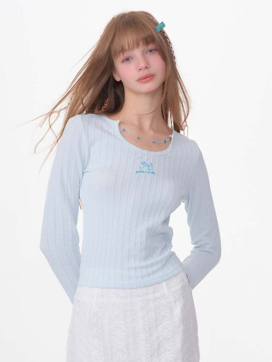 Bow Knot Semi-Sheer Slim Fit Bottoming Shirt [s0000007137]