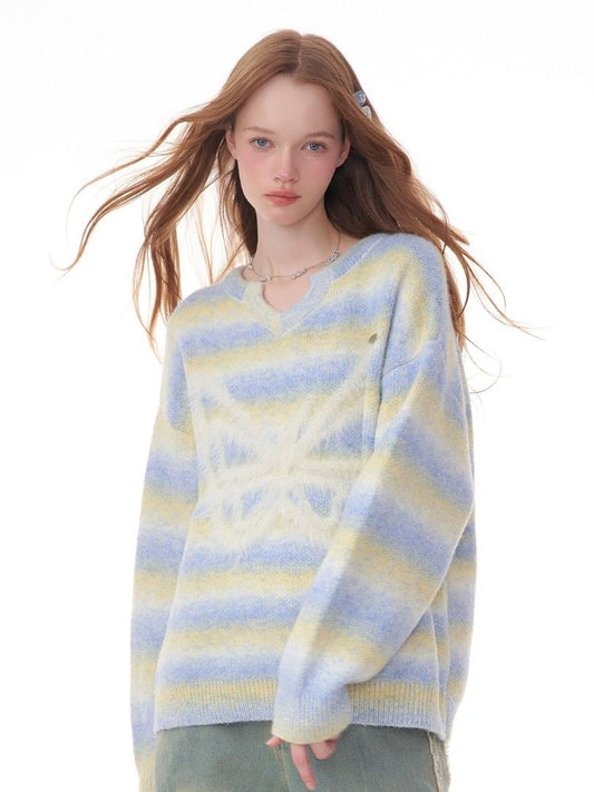 Sticky Chunky Red Striped Knit Sweater Cardigan [s0000006174]
