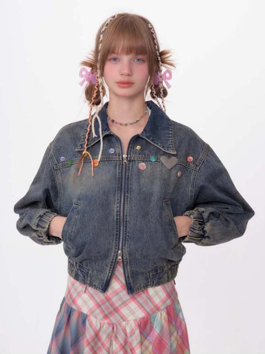 Colorful Buttons Washed Denim Jacket [s0000007131]