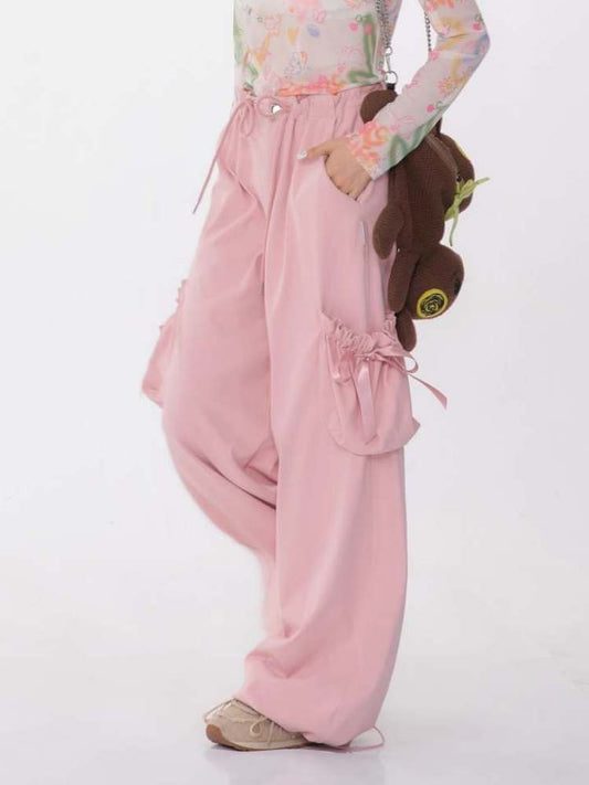 High Waist Ribbon Pocket Wide Leg Pants [s0000007138]