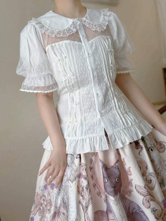 MIST - Sweet Lolita Blouse Doll Collar Lolita Shirt With Bubble Sleeve