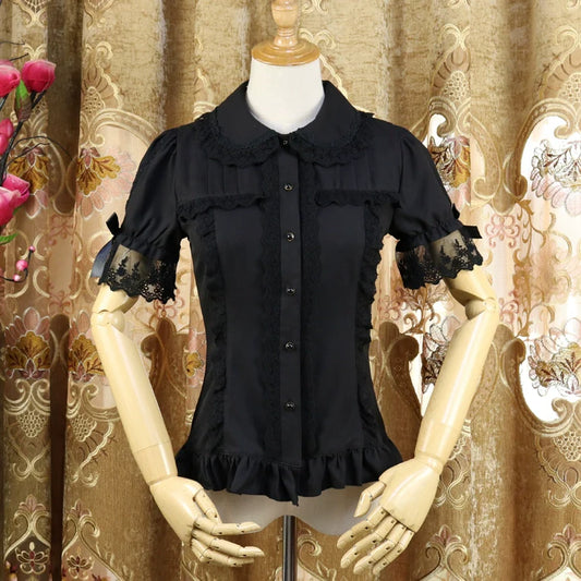 Alice Girl - Gothic Lolita Blouse Short Sleeve Black Shirt